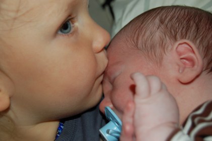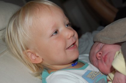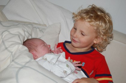 Anton verkar ganska ledsen ochsäger att han inte vill vara någon storebror. Det är jobbigt tycker han. På kvällen fick han ha bebisen i sin säng. De låg och läste LHC-tidningen. Bebisen verkar gilla Anton i alla fall (så mycker som en fyra dagar gammal bebis kan gilla sin storebror). Nu verkar Anton gilla honom också..