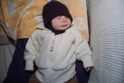 Så här fint sover lillemannen i sin nya fina jacka som han fått av fam Franz (jättefina byxor och tröja fick han med men dem får han växa i. Tack så mycket!):