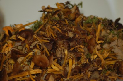 Lördagen blev en händelserik dag. Vi for iväg på förmiddagen för att leta svamp och ha en skön dag ute i skogen. Vi har ju den fantastiska förmånen att Fredrik har en kompis vars familj äger skog utanför Finspång. Där knatade vi runt ett par timmar och hittade jättemycket svamp. Inte alls så mycket vanliga kantareller utan mest sådana där bruna med gul stjälk. Kring huruvida det är trattkatareller eller gul trumpetsvamp strider de lärde men ätbara verkar de i alla fall vara. Ingen har spytt eller dött ännu i alla fall. Den lille bebisen satt i selen på min mage hela tiden. Det fanns så mycket svamp i skogen så vi fick lämna kvar massor. När vi kom hem hade vi K2 av svamp på köksbordet och jag ångrade att jag varit så girig ute i skogen. Men vi ränsade och ränsade till det var nästan slut. Sedan åt vi svampsås. Med köttfärsbiff…