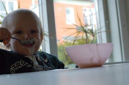 På lördagmorgonen var det dags för Antons första isbandyträning (som om det inte räckte med det vi har). Han ska alltså träna vanlig bandy också (återkommer med hur många aktiviteter vi har i den här familjen då jag räknat ihop dem 😉 ). Han tycktre det var kul och Wilmer ska också få prova. Under tiden Fredrik och Anton var borta så passade Diddan på att kalasa på Ossians frukost.