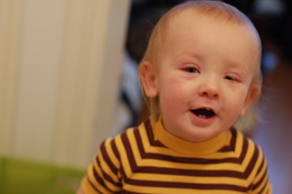 Han har hållit mig vaken ett par nätter då han har haft ganska tråkig krupp, och i natt var han så varm att man hade kunnat steka ägg på honom. I morse fick farsan hämta Ossian och köra honom till dagmamman för Didrik var så trälig. Men vips så vaknade han till och bjöd på ett litet leende (nja.. inte riktigt ‘vips’ men ett par timmar senare i alla fall 🙂 )