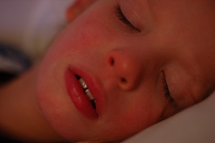Anton är väldigt sjuk. Han har klagat på huvudvärk under några dagar men har inte haft feber förrän idag. Nu har han trettionio och fem. Han hostar, och hostar. Kan bli ett läkarbesök om det inte blir bättre fort. Stackaren 😦