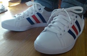 Anton fick spatsera iväg till skolan i helt nya skor idag. Vi blev så glada att vi lyckades trycka in dojjorna i inlinebudgeten vi hade igår. Det är ett par Addidas Court Star. Nedsatta till halva priset.