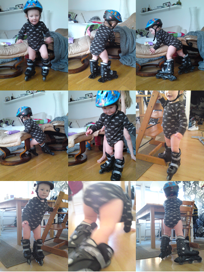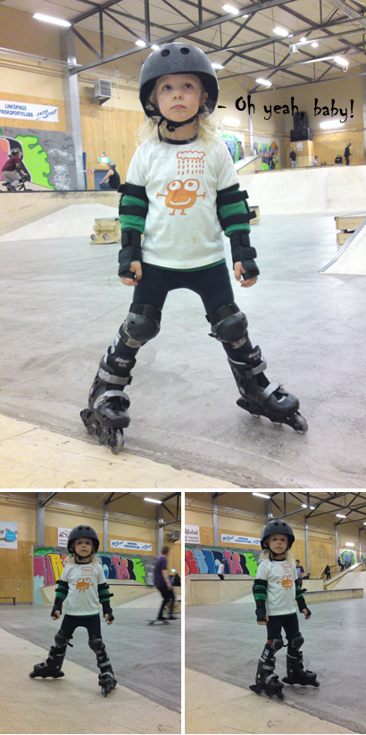 Igår var vi en sväng till Hangaren på kvällen. Barnen har verkligen kommit att älska denna (livsfarliga? 😉 ) aktivitet och igår var det även premiär för Ossian i rullskridskorna. Det gick bra för honom och han tyckte att det var kul. Det kommer inte att dröja innan vi får se honom susa nedför backarna. De nya bladesen kanske inte var så bra men det funkar tills vidare.