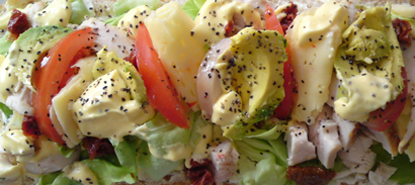 Som ni ser var det en massa pålägg på; avocado, soltorkade tomater, färslk tomater, kyckling, sallad, beanaise, ost osv. Alltihopa låg på en ciabattahalva. Måste kostat en förmögenhet att handla till den smörgåsen 😉
