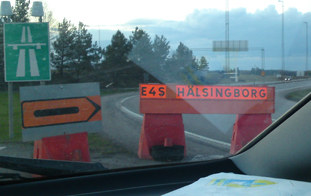 Ikväll då jag skulle åka till macken och köpa mjölk och smör åkte jag förbi skylten som ledde om trafiken. Jag tycker den var lite kul. Undrar om bilarna vågade svänga åt det hållet. Vad jag vet så har man inte använt denna stavning på flera hundra år 😉