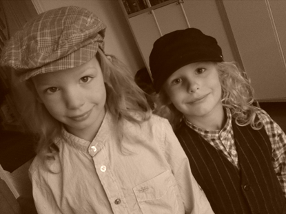 Anton och Wilmer på väg till en gammaldags skoldag i förrgår..