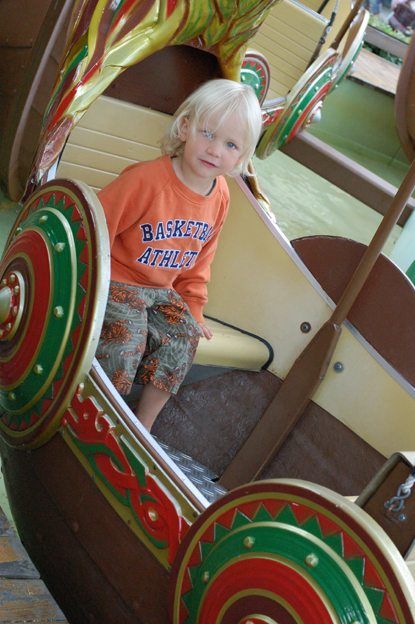 En modig Ossian åker karusell alldeles själv. Förra sommaren.