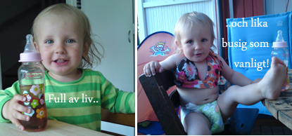Ossian kämpar vidare med sin koppor. Just nu tar han sig en liten lur. Anton har hög feber och ont i huvudet/överallt enligt egen utsago. Alvedon hade ingen effekt alls utan febern fortsatte att stiga så nu har han fått Ipren också. Dessutom baddar jag honom med en ljummen fuktig handduk. Tur att vädert har en liten dipp idag 🙂