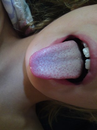 Antons och Wilmers tungor ser så konstiga ut idag på mogonen efter gårdagens och nattens höga feber. Jag har även kollat i halsarna på dem. Antons har lite vita prickar på mandlarna men är inte så röd. I Wilmers kan jag skönja prickar men de är inte vita. Han har dock tendens till sådana där illröda partier som man kan ha vid scharlakansfeber. Anton har ju haft ont i magen också vilket är ett symptom på det. Dock gjorde smärtdosen i natt susen för feber och huvudvärk har avtagit för att ännu inte återkomma med samma kraft (ännu i alla fall).