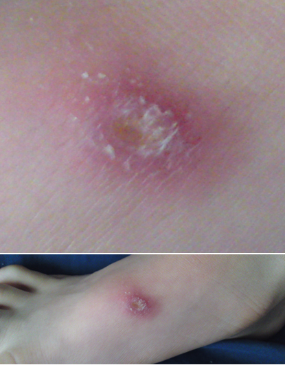 Anton har den här konstiga grejen på sin fot. Först var det en gul blåsa men medan jag gick för att hämta kameran så sprack den. Från början var det ett sår som Anton fick då vi var på kalas i kvarterslokalen för snart två veckor sedan. Han liksom brände sig mot golvet så han kom farande som ett jehu.