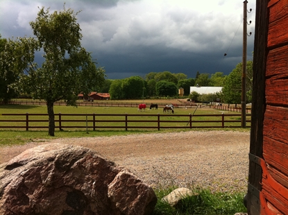 Det rådde inga tvivel om vilket väder som väntade så då vi skulle fika drog vi oss närmare parkeringsplatsen där bilen stod. Vi hann lagom äta banan och dricka festis och hoppa in i bilen innan det var dags. Jag kände första droppen i pannan just innan jag stängde bildörren. Sedan kom det; tidenas åsk- och regnväder.