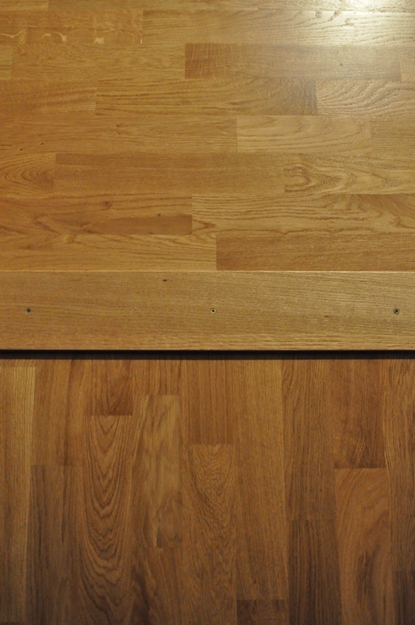 Jag tog för givet att jag skulle få ett enhetligt golv eftersom vi beställt samma sort till hela. Istället ser golvet för hemskt ut. I de fyra rummen ligger golvet i samma riktning. I allrummet i mitten ligger det på tvären.