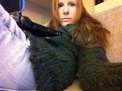 Jag sitter i vår nya soffa