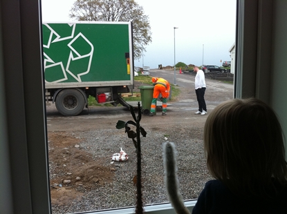 När vi just flyttat dit kom Tekniska Verken och skulle fixa med en elkontakt.