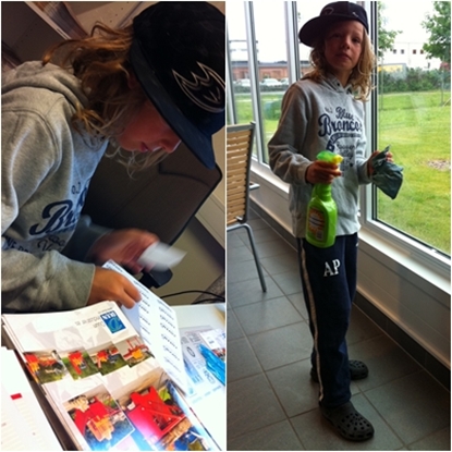 Anton fick var ledig från fritis idag. Han följde med mig till jobbet. För tjugo kronor i timmen utförde han diverse elementära kontorsgöromål som exempelvis städning.