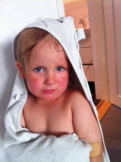 Nu vet vi att han tål kåvepenin. Dock vet vi fortfaande inte huruvida han tål heracillin. Men det är såhär man gör då man testar om man har allergi mot penicillin. Kåvepenin biter dock inte på staffylokocker så om han skulle få det så kommer han att få heracillin och då får vi sitta och vänta på sjukan tills en reaktion borde ha uppkommit. Eller så får man be om någon annan antibiotika.