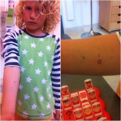 Det började med att de gjorde ett pricktest med det vanligaste penicilliet, kåvepenin. Han fick ingen reaktion på det så man gick vidare med att ge en kåvepenintablett. Vi fick sedan sitta i väntrummet i en timme och vänta på reaktion. Det gick bra. Vi läste bok och spelade spel.