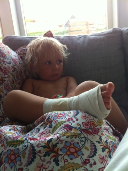 På foten alltså. Didriks. Den som vi var på akutröntgen med i söndags förmiddag och fick besked om att den var frisk. Idag ringde doktorn som vi träffade på jourcentralen och sa att ett ben uppe på foten är helt av. De hade haft hans plåtar uppe på något möte tydligen. Men man gör inget med frakturen utan det ska läka helt på sex veckor.
