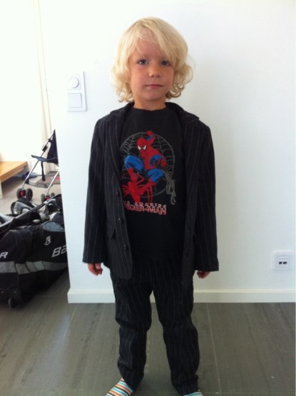 På bilden: Ossian har valt sina egna kalaskläder. Han fegade ur på kavajen sedan för han tyckte att han såg ”för mycket vuxen ut” i den.