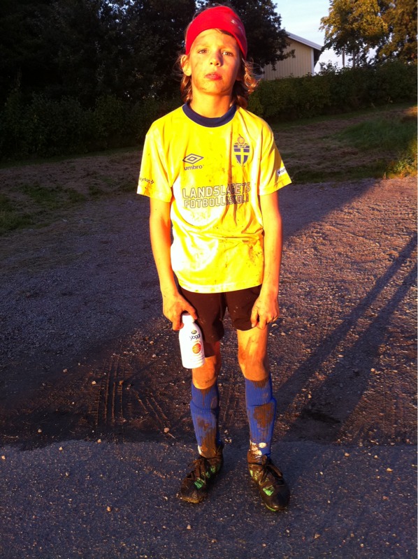 Apropå bajs så var Anton rättså skitig då han kom hem från fotbollsträningen igår.