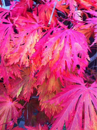 Ute är det höst nu. I mina föräldrars trädgård finns en riktigt coolt buske. Från början var det bara en liten buske. Den är grön under sommaren men sedan under några veckor övergår den till en djupt vinröd nyans. Just nu är den på god väg dit.