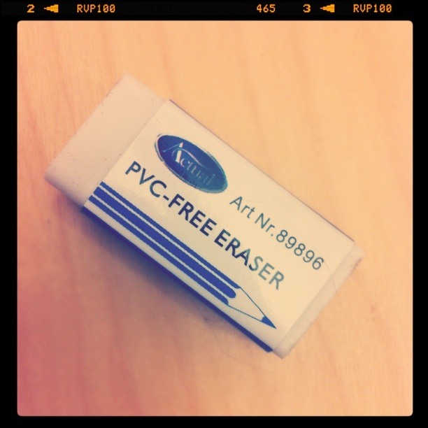 En av dem drar i sitt suddgummi. Efter en stund lyckas han få loss ett rejält stycke som han hivar iväg genom salen.
