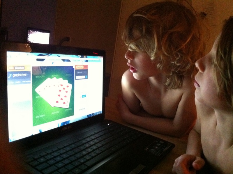 Anton har varit med mig på jobbet idag. Barnen har påsklov den här veckan och jag tycker inte att han ska vara hemma ensam hela dagen. Han var föga imponerad av min inkorg med leverantörsfakturor. Desto mer impad var han av min kollega som livnärt sig på poker under tre år. Det är grejer det tycker Anton.