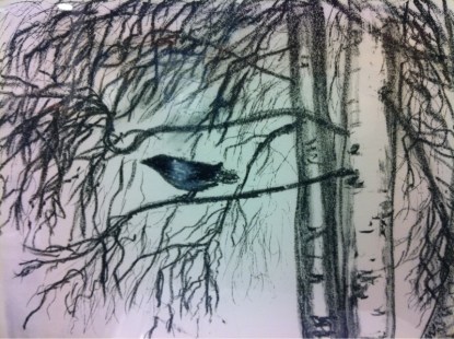 På bilden: En ensam fågel. Ewy Låås har målat den.