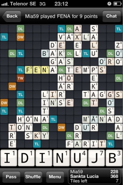 Istället för att glo på film med Anton och Fredrik så spelade jag Rumble och Wordfeud hela kvällen. Blev fullkomligt dränkt i spelförfrågningar efter en liten hint på fejjan. Jättekul 🙂