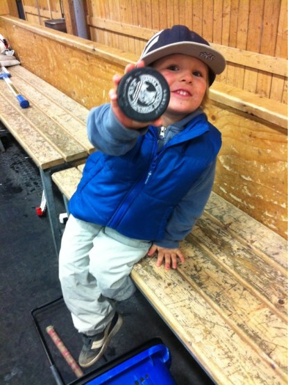 På bilden: Didrik har hittat en puck på sommarhockeyträningen.