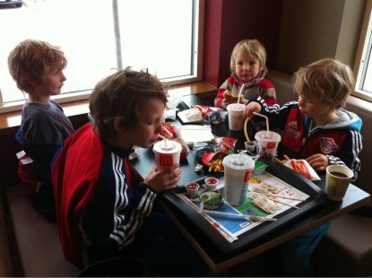 Vi käkade på mackdonnals innan vi drog till amerikanerna och lekte och drack kaffe. Vi upptäckte att Didrik hade feber och kom på att Wilmer inte hade fotbollsskor till träningen senare.