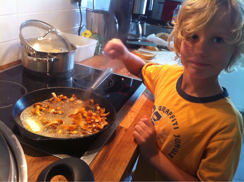 Då vi kom hem stektes det kantareller. Kock var den som minst troligt skulle äta dem.