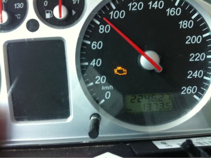 På vägen hem från Norrköping började en lampa lysa i bilen (som för övrigt beter sig helstört då man kör den typ rycker och håller på). Så nu kommer vi inte långt.