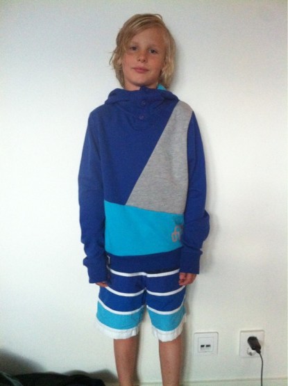 Wilmer har testat sina nya grejer och fönat och fixat håret. Jag hann ta en bild innan han rufsade till sig. Finkillen som tappade en tand igår.