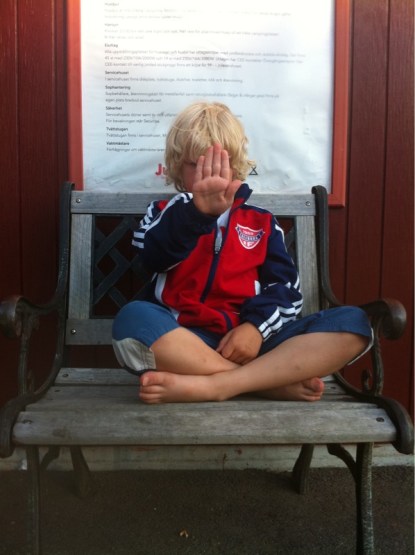 – Hämtat Anton efter hans resa/läger i Skara. Så härligt att han är hemma. Han är så trött men har haft det bra. Han har blivit mycket väl omhändertagen under hela veckan. Hans egna ansvarsområden får han jobba på. Jag vet nämligen att han bara äger ett par neonoranga Pierre Robert-kallingar så jag tror inte att han fattat vilket fack på trunken de blå, gröna, randiga och vit-svarta kallingarna låg. Och han måste verkligen ha ogillat tvålen vi packat ner åt honom för den hade han totaltatat. Helt rätt! Vem f** behöver tvål?? 😉