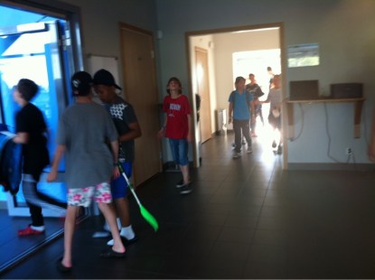 Tyvärr hade Anton inte någon bra dag idag utan hade ont i magen och sprang på toa under hela eftermiddagen. Han missade hela ispasset tyvärr för han orkade inte vara med. Men efter en smörgås, lite dryck och senare pasta och carbonara, så var han bra igen och badade och lekte. I morgon ska de till Skara Sommarland. Vi är på väg hem nu.
