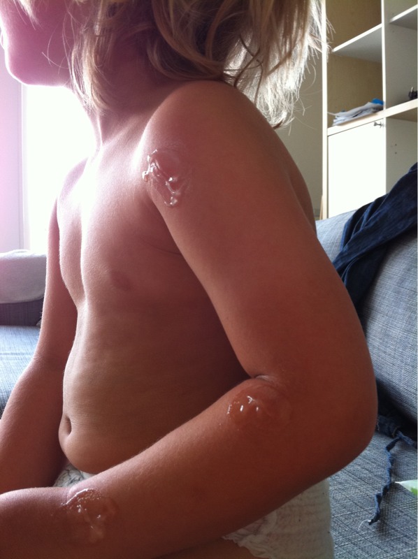 Didrik blev typ uppäten av mygg igår kväll. Idag tjatar han om att han vill bli kliad.