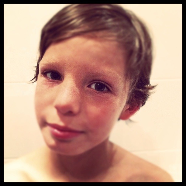 Har vågat håret. Det blonda. Ser ut lite som en ängel. Skenet bedrar.