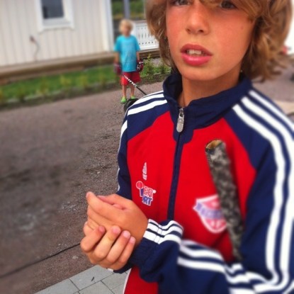 Jag skrev nog inget om det men igår blev Wilmer och hans klasskamrater stuckna av getingar då de var ute i skogen med fritis. Wilmer fick ett stick i huvudet och minst två andra blev också stuckna.