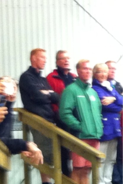 På bilden: En suddig men exklusiv publik. En pappa och en farbror med känt efternamn beskådar en internmatch i pojkar 00/01 på Rögle Sommarhockey. Kommer nog dröja innan någon av våra ungar får spela inför liknande igen.