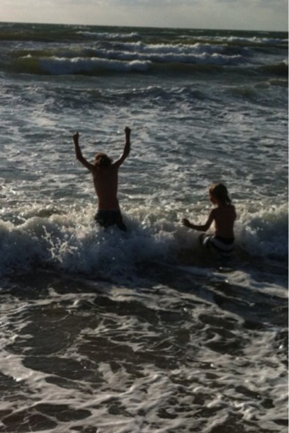 Nu ikväll blundar jag och ser bilden av Ossian och Anton då de badar i havet. Det ser så härligt ut, sättet som Anton håller upp armarna. Han ser ut att känna sig fri.