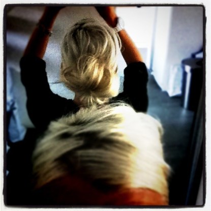 ”Varför är ditt hår knulligt mamma? Där bak!” Didrik undrar. Jag har inget svar.