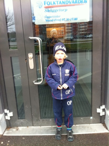 Ossian grät efter bedövningssprutan och fick sig en skrapa av sköterskan för att han dreglade lite vatten på golvet då han skulle skölja och spotta med sin slappa underläpp.