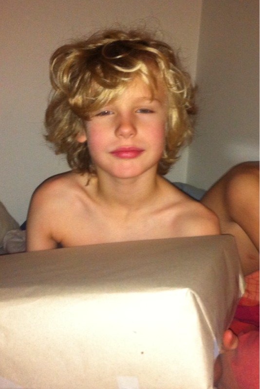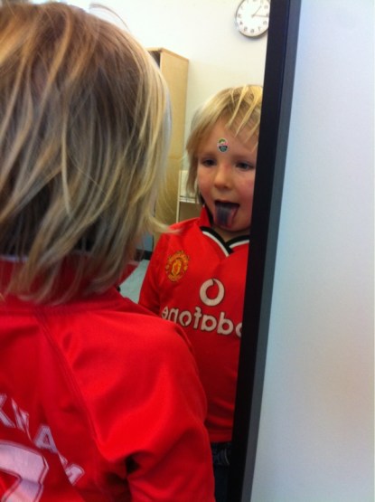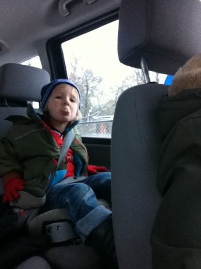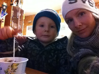 Mammas modiga och duktiga pojke. På eftermiddagen har han varit på kalas i bowlinghallen och sedan har han varit med mormor och morfar.