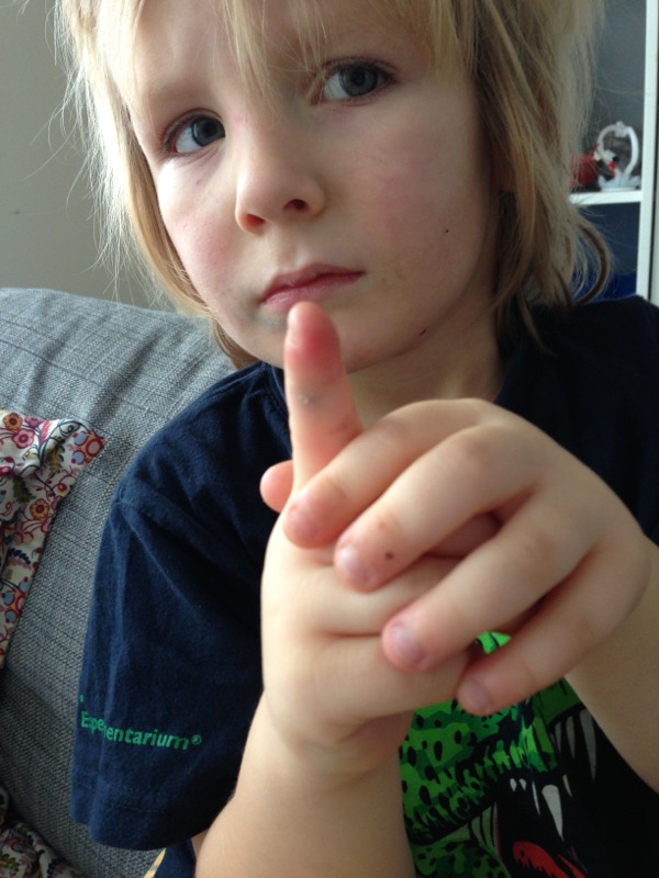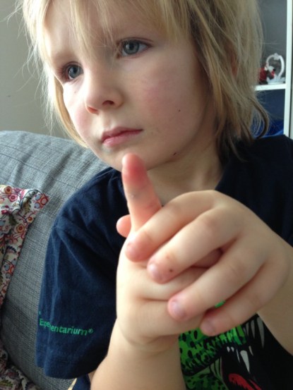 Didrik har klämt fingret idag. Nu är det bara Ossian kvar.. som inte nästan klämt av sig ett finger under det senaste året.