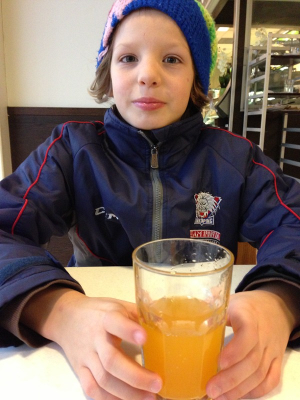 På bilden: Fina och duktiga Anton dricker läsk på sin elfte födelsedag.