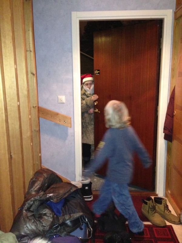 Det blev en frisk och trevlig julafton hemma hos barnens mormor och morfar detta året. Julmat, Kalle A, julklappar och julgröt. Barnen släpade hem sina fulla klapppåsar själva sedan.