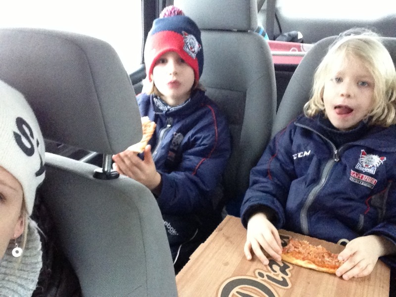 Anton valde kebabrulle till kvällsmat och vi fick pizza. Bäst att ladda med skräp nu för framåt blir det lax, sill skinka och köttbullar.