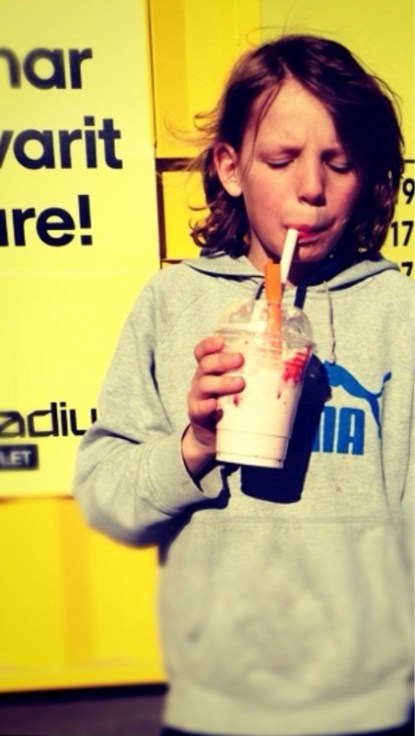 På eftermiddagen har Anton varit och köpt nya skor. Jag var med. Han gillar inte att handla skor och ville inte alls åka. Men eftersom att han alltid är hungrig så mutade jag honom med en ”hemgjord lyxshake” från Max.